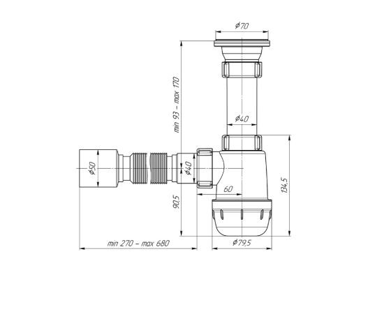 • тип сифона: бутылочный, с увеличенным корпусом;