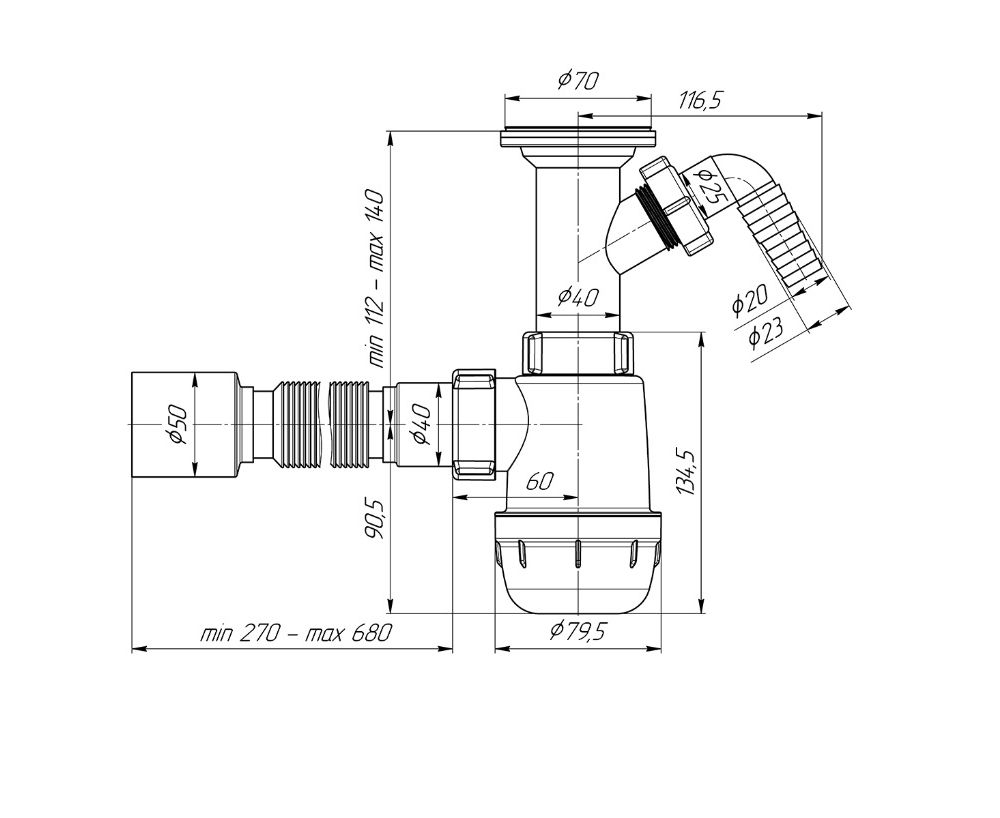 • тип сифона: бутылочный;