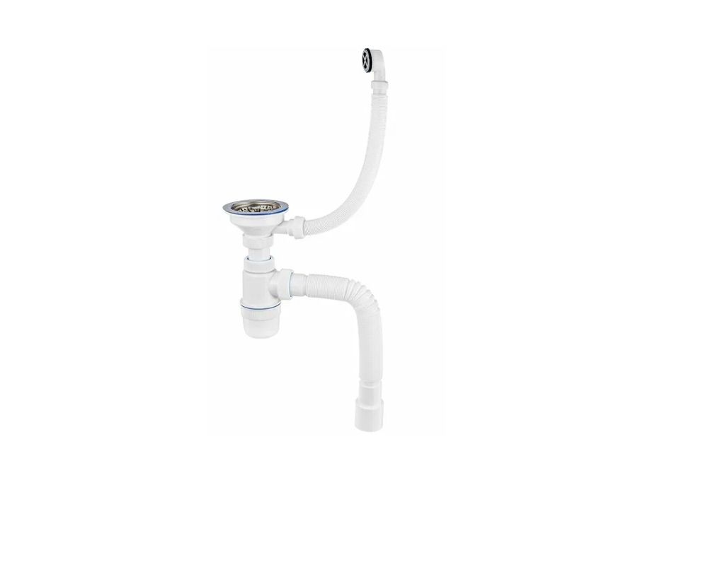 Сифон "Элит" для мойки, бутылочного типа, с нержавеющей чашкой, с круглым переливом и с гофротрубой