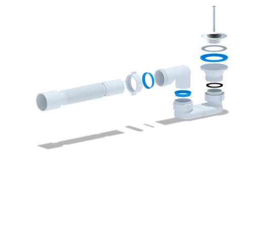 Сифон для душевого поддона АНИ Пласт E015 — плоский сифон с гибкой трубкой 40×50 мм для отвода в канализацию.