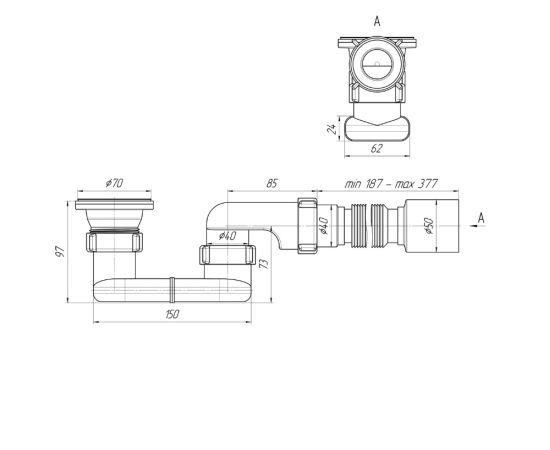 • длина гибкой трубки — 187–377 мм;