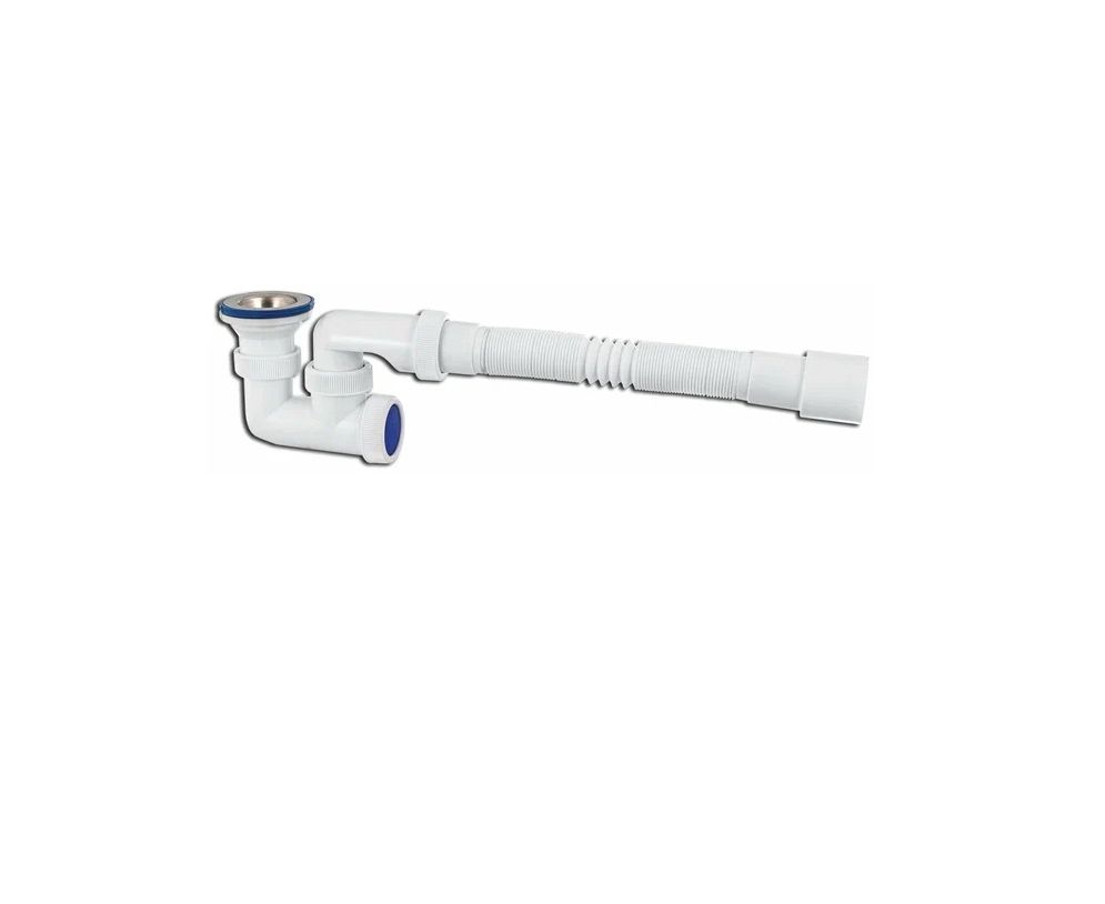 Сифон VIRPlast Универсал для ванн с нержавещими чашками и жесткой трубой — соединительное оборудование сантехники с канализационной трубой. Служит как для отвода использованной воды, так и сдерживания жидкости — гидробарьер для проникновения посторонних запахов. Можно также использовать в быту и технических помещениях