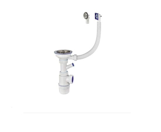 Сифон для мойки Virpast by Wirquin с отводом для стиральной машины с нержавеющей чашкой D114 мм предназначен для нержавеющих и керамогранитных моек с отверстием слива D90 мм от международного производителя инженерной сантехники Wirquin.