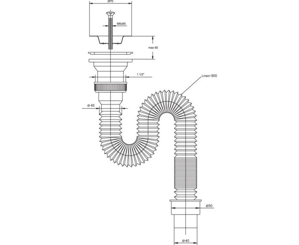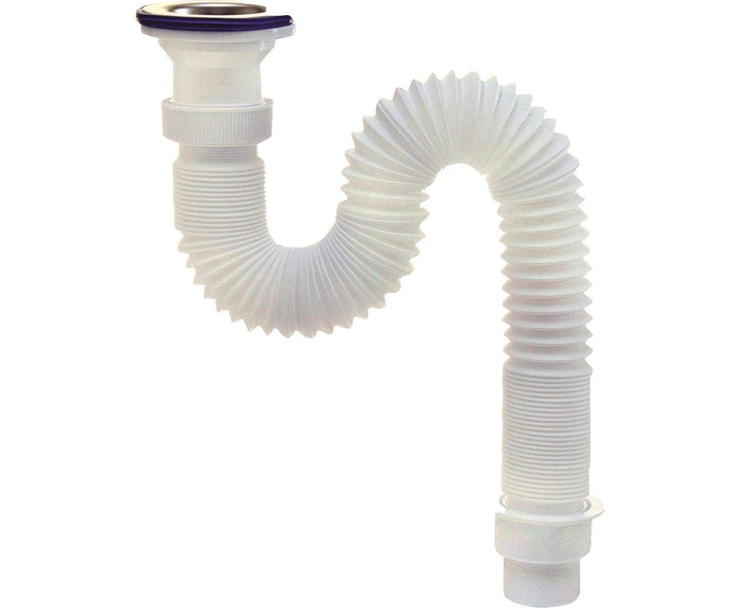 Конструкция выполнена из пластика. Сифон Элит представляет из себя гофрированный шланг с двумя концами, один из которых крепится к отводу раковины (перелив), другим — к канализационной трубе (слив). На конце имеется чашка, выполненная из нержавеющей стали. Возможность подключения дополнительных переходников под стиральную или посудомоечную машинку.
