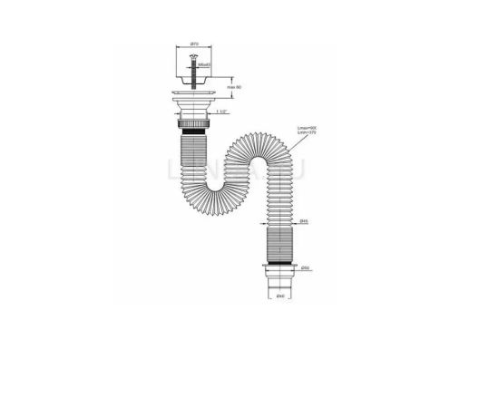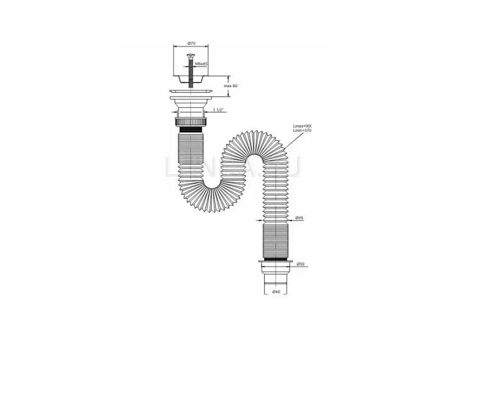 Сифон гофрированный «Элит» с нержавеющей чашкой диаметром 70 мм, длиной 900 мм (код VIRPlast 30980631) — соединительное оборудование для раковины с канализационной трубой. Служит для отвода использованной воды и в качестве гидробарьера для проникновения посторонних запахов.