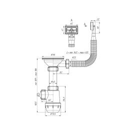 Сифон Ани Грот А0145S д/мойки 3 1/2*40 с переливом гибкий