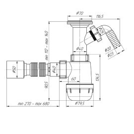 Сифон Ани Грот А1015 д/мойки 1 1/2*40 с отводом д/стиральной машины гиб.труба 40*40/50
