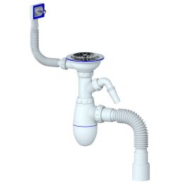 Сифон д/мойки Элит с нерж.чашкой d112мм крул.перелив , гофра 0,6м 30986164