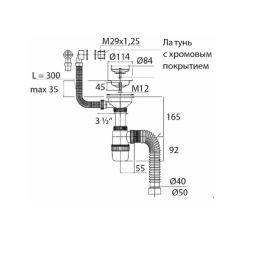 Сифон д/мойки Unicorn B435V с нерж.чашкой d115мм c отводом д/стир.маш. гофра 40/50