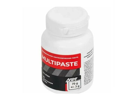 Уплотнительная универсальная паста MULTIPASTE объёмом 70 г подходит для использования с различными средами, включая газ и воду.