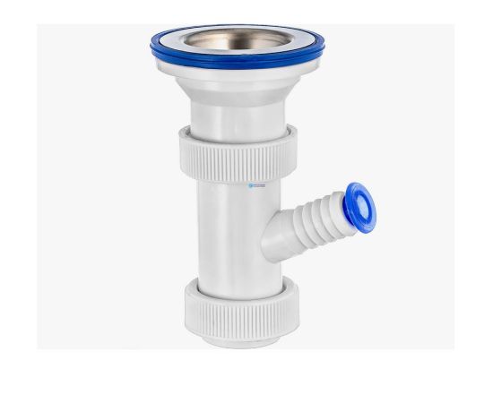 Выпуск «Элит» с нержавеющей чашкой D70 мм и отводом для стиральной или посудомоечной машины 1 1/2" от бренда VIRPlast — это изделие, которое объединяет стиль и функциональность.