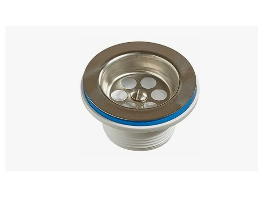Выпуск ORIO А-4004-01 — пластиковый выпуск с нержавеющей чашкой диаметром 70 мм и резьбой 1 1/2" для моек со сливом до 52 мм и прямоугольным переливом.