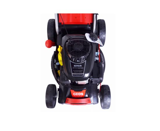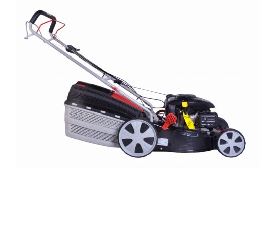 Широкие колеса с шарикоподшипниками обеспечивают оптимальный комфорт при движении. Привод на колеса позволяет без труда маневрировать газонокосилкой.
