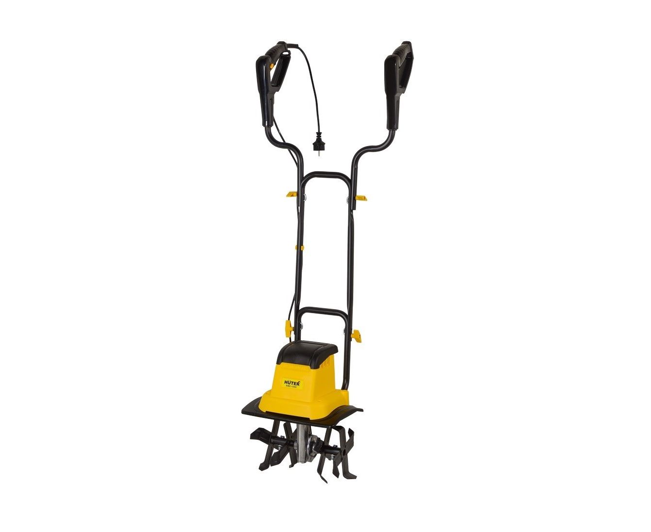 Электрический культиватор Huter ЕМС-1200 подходит для рыхления грядок и цветников, прополки сорняков, равномерного внесения удобрений. Электрический культиватор оснащен синхронным щеточным двигателем мощностью 1200 Вт, электродвигатель запитывается от бытовой сети 220В. Держатель кабеля на рукоятке закрепляет провод и предотвращает его случайное попадание в зону обработки. За проход культиватор обрабатывает полосу шириной 32 см. Управление агрегатом простое, для запуска нужно нажать кнопку блокировки от случайного пуска и рукоятку старта.