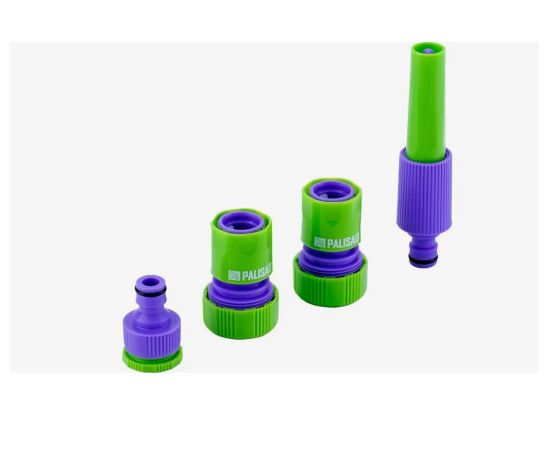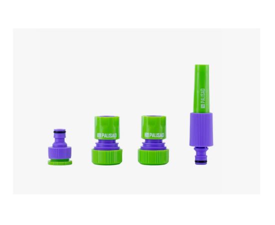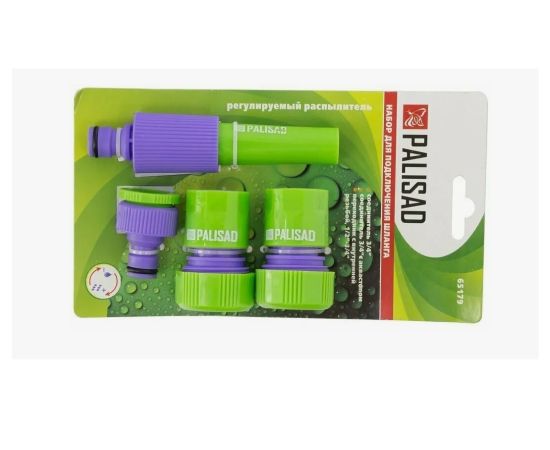 Набор для подключения шланга 3/4 дюйма Palisad 65179 состоит из распылителя и 3 адаптеров к нему. Его используют для полива растений в саду или огороде, а также для очистки сельскохозяйственного инвентаря от загрязнений.