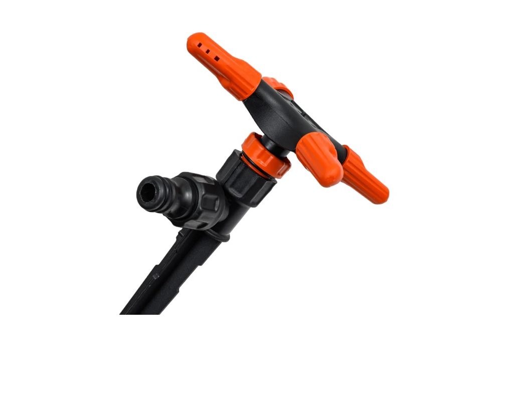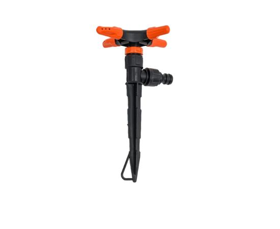 • четыре вращающихся сопла осуществляют равномерный круговой полив сада;