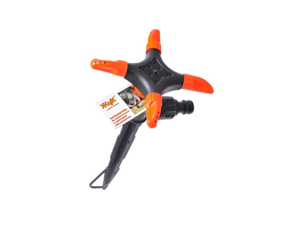 Распылитель 4-х лепестковый Жук под коннектор 4607156362677 предназначен для стационарного полива растений в клумбах и различных небольших участков. Четыре вращающихся сопла осуществляют равномерный круговой полив сада. Крепится к шлангу через коннектор. Благодаря специальному колышку происходит надежное крепление аппарата к поверхности. Приспособление позволяет значительно экономить время и силы, затрачиваемые на полив растений. Нужно просто включить распылитель и можно заниматься другими делами в то время, как будет проходить полив. Приспособление выполнено из пластика.