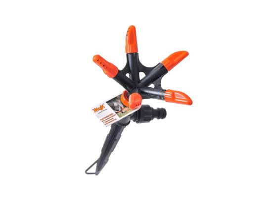 Распылитель 5-ти лепестковый Жук под коннектор 4607156364404 предназначен для стационарного полива растений на клумбах и прочих небольших участках. Пять вращающихся сопел осуществляют равномерный круговой полив. Распылитель крепится к шлангу через коннектор. Благодаря специальному колышку происходит надежное крепление к поверхности. Приспособление позволяет значительно экономить время и силы. Нужно просто включить распылитель и спокойно заниматься другими делами. Приспособление выполнено из пластика.