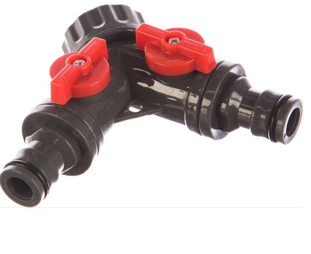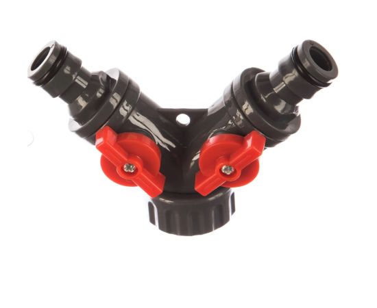 Распределитель 2-х канальный КУРС 76427 предназначен для разветвления подачи воды в шланге при поливе. Имеет внутреннюю резьбу основания 3/4". Краны предоставляют возможность регулировать напор воды в линиях.