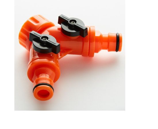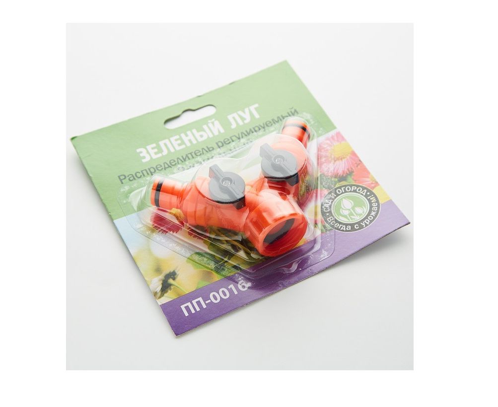 Распределитель 2-х канальный регулируемый «Зелёный луг» ПП-0016 (артикул: 0R-00004061) — устройство для одновременного подключения двух водоразборных линий.