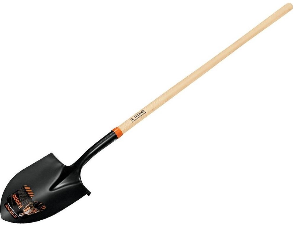 Ковш из закалённой стали с защитным покрытием Универсальная форма: для срезания, перекопки и погрузки грунта Удлинённая тулейка с двойным креплением обжимным кольцом и сквозной клёпкой увеличивает прочность конструкции Прочный длинный гладкий черенок из высококачественной древесины Удобный наступ с задним отворотом