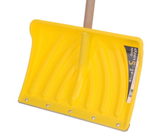 Усиленный семью ребрами жесткости ковш и стальная оцинкованная планка U-формы выдерживают силу удара до 1200Н и делают лопату NORD незаменимой в уборке жесткого снега и наста. Планка крепится пятью стальными утопленными клёпками, что предотвращает истирание и продлевает срок службы лопаты.