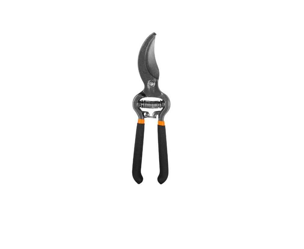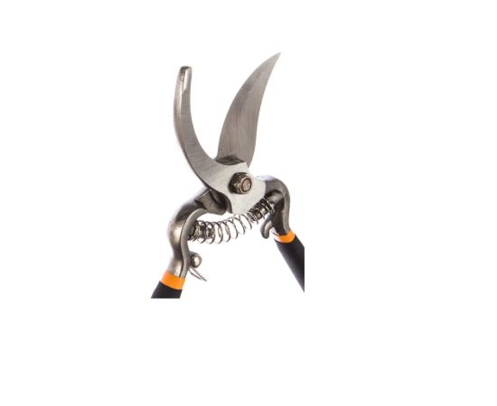 Секатор оснащен возвратной пружиной, что позволяет работать одной рукой, а рукоятки имеют качественное покрытие для удобного хвата.