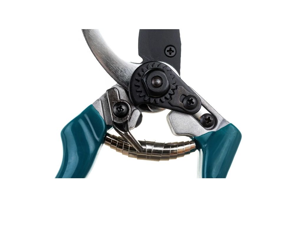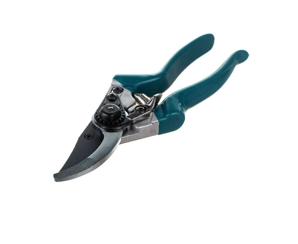 Секатор имеет стандартную форму и предназначен для обрезки кустов и небольших веток. Закаленное лезвие защищено от коррозии и увеличивает срок службы инструмента. Усиленные алюминиевые рукоятки с виниловым покрытием обеспечивают надежный хват и предотвращают проскальзывание. Верхнее лезвие можно заново затачивать или заменить.