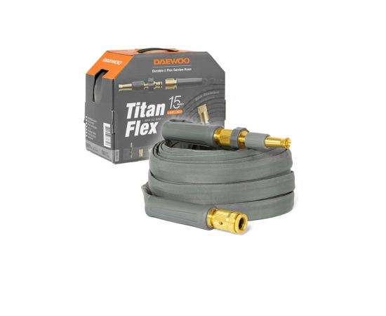 Шланг DAEWOO TitanFlex создан с использованием новейших технологий в области водоснабжения. Гибкий внутренний шланг из ПВХ и инновационный внешний слой, выпоненный из прочной текстильной ткани, обеспечивают устойчивость к давлению на разрв до 50 бар. Шланг TitanFlex обладает потрясающей гибкостью, его можно компактно свернуть и хранить в удобном для Вас месте. Инновациооные материалы делают шланг ультралегким, он на 50% легче, чем аналогичный шланг из ПВХ. Шланг выполнен из материалов, устойчивых к перепадам температур и воздействию УФ-излучению, что позволит хранить его на улице или в неотапливаемом помещении. Допустимый диапазон температур от -10° до 60°. В наборе со сшлангом идет всё, что нужно для моментального подключения к водоснабжению. Коннектора и насадка-распылитель выполнены из металла, что обеспечивает их долгий срок службы. Насадка имеет возможность регулировка угла распыления.