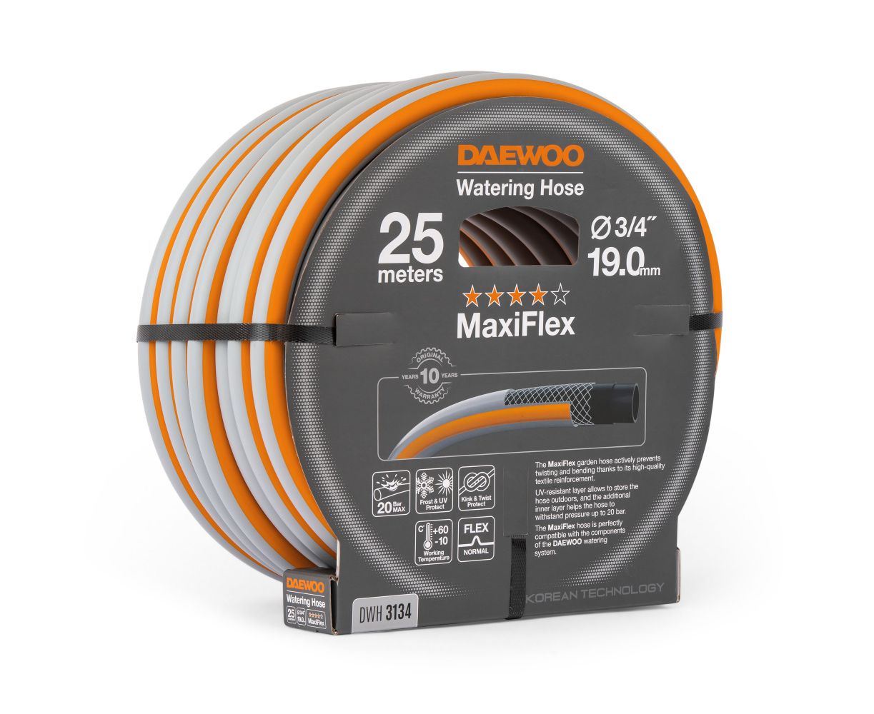 Шланг DAEWOO maxiflex диаметром 3/4 19 мм, 25 м DWH 3134 предназначен для перекачки воды на садовом участке.