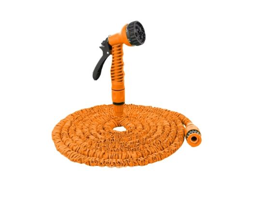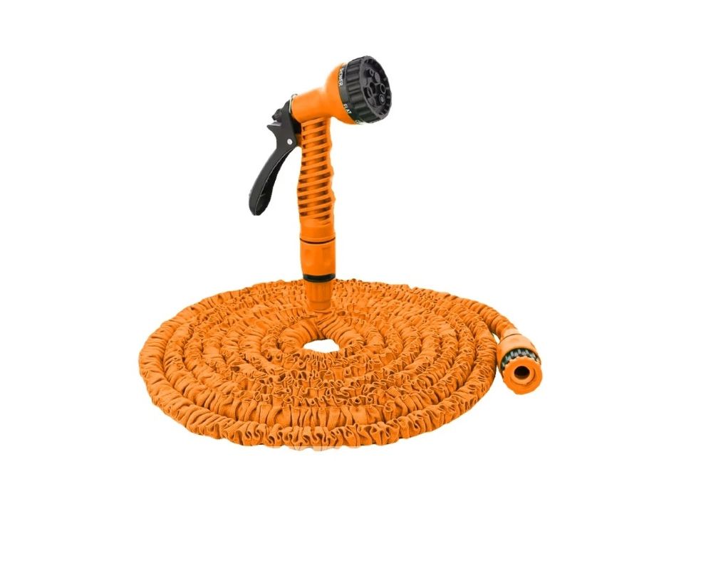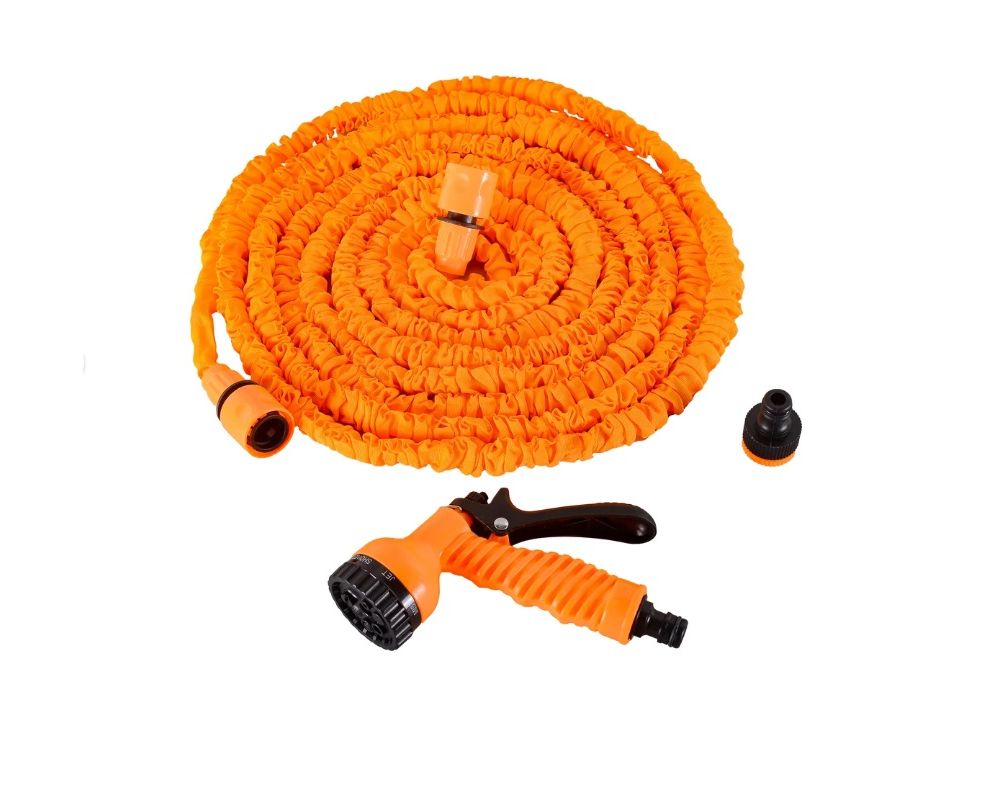 Шланг имеет специальную конструкцию, которая позволяет ему расширяться до 3 раз своей первоначальной длины при подаче воды и сжиматься обратно при ее отключении. Это делает его очень удобным в использовании и позволяет экономить место при хранении.