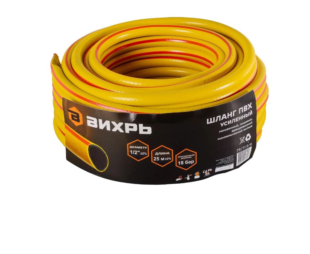 Шланг поливочный «Вихрь» 73/7/2/6 (жёлтый, пищевой) предназначен для орошения почвы на садовых и парковых участках.