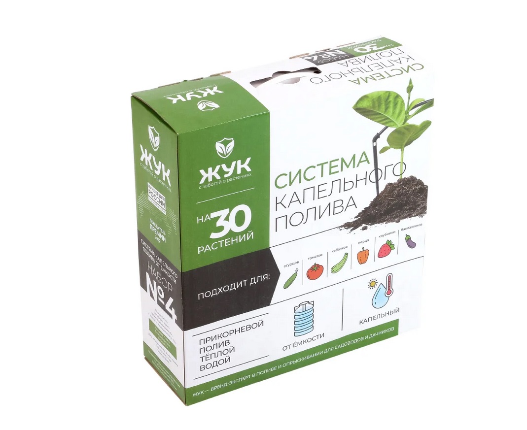 Капельный полив ЖУК от емкости 30 растений используется для полива растений в парниках и теплицах, а также на открытом грунте.
