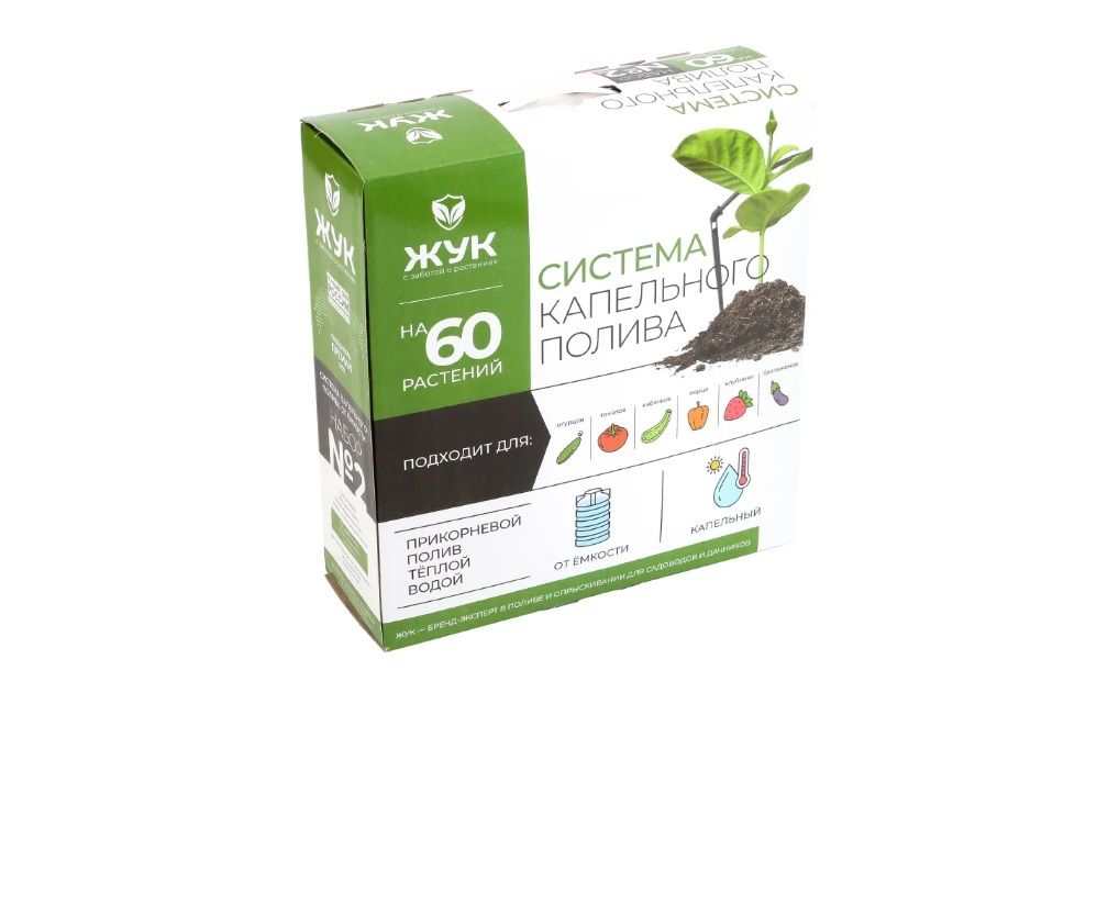 Капельный полив ЖУК от емкости 60 растений используется для полива растений в парниках и теплицах, а также на открытом грунте.