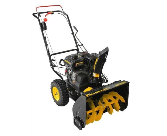 Четырехтактный двигатель Champion G160HK OHV с максимальной мощностью 5.5 л.с. (163 куб.см.) 4 скорости вперед и 2 скорости назад дают возможность оператору подобрать скорость под различные условия работы в зависимости от количества выпавшего снега. Металлический желоб (труба) выброса. Металлический ковш и шнек справляются с любым типом снега. Разблокировка колес шплинтом на колесе предназначена для улучшения маневренности снегоотбрасывателя. Разблокировка происходит за счет освобождения от жесткого соединения шплинтом ступицы колеса от ведущего вала. Поворот желоба выброса - 190°. Регулировка дальности выбора – ручная. Пневмоколеса с агрессивным протектором обеспечивают хорошее сцепление с поверхностью.