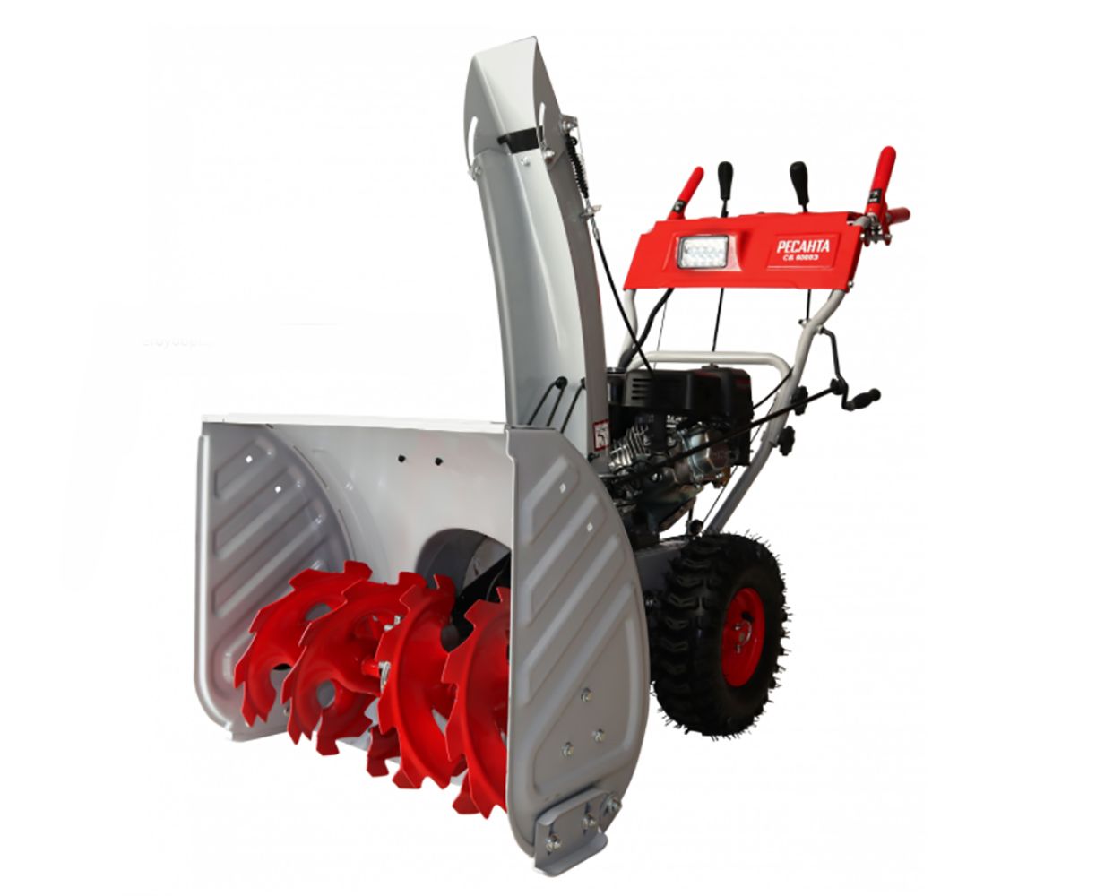 Снегоуборщик Ресанта СБ 6000Э предназначен для расчистки от выпавшего снега территории, например, небольшие дорожки или территорию возле загородного дома. Самоходный агрегат оборудован четырехтактным двигателем мощностью 8.0 л.с. Ширина обработки за один проход составляет 56 сантиметров. Рычаг регулировки скорости, рычаг, регулирующий направление и дальность выброса, вынесены на панель оператора. Металлический шнек может измельчать плотный или мокрый снег. Для электростартера необходим аккумулятор 12 В, 10 А*ч.