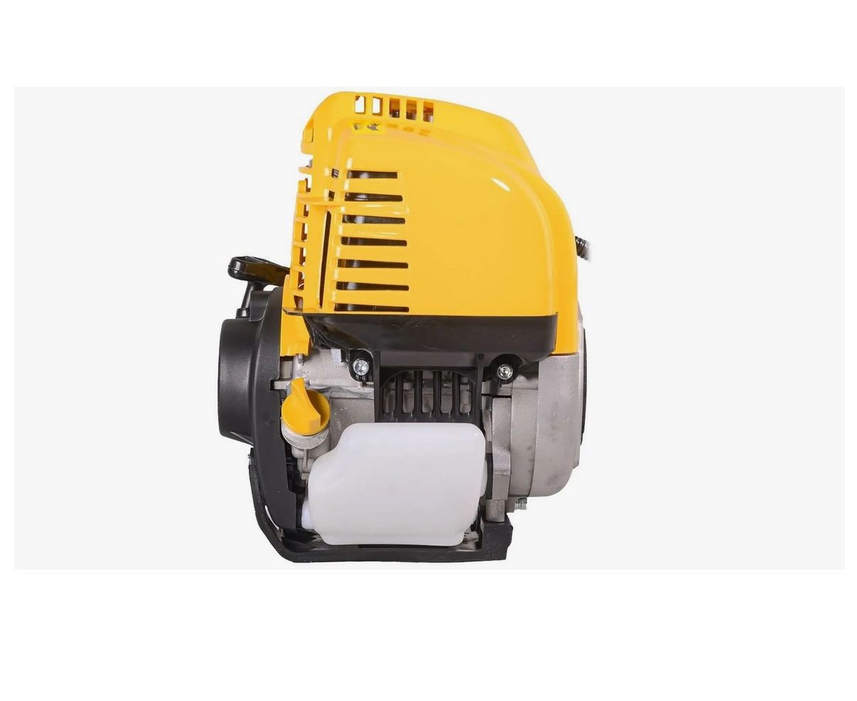 Комплектация: двигатель в сборе, штанга с редуктором, рукоятки управления (левая и правая), защитный кожух, катушка с леской, режущий дис