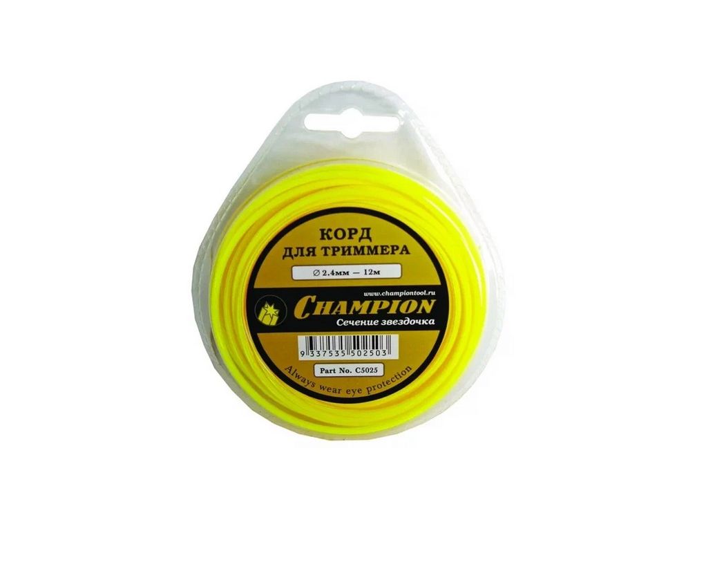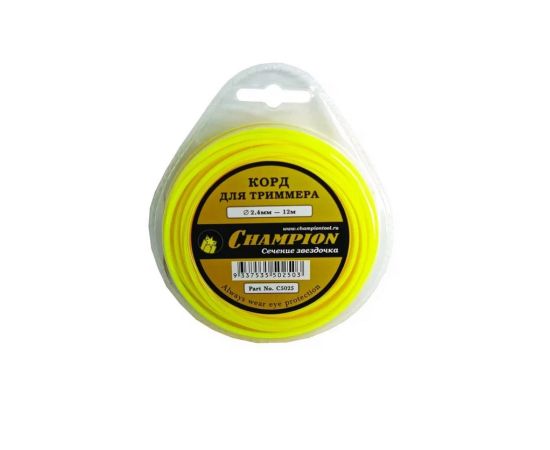 Корд триммерный Champion Star 2,4 мм х 12 м (звезда) C5025 — это корд жёлтого цвета с сечением «звездочка».