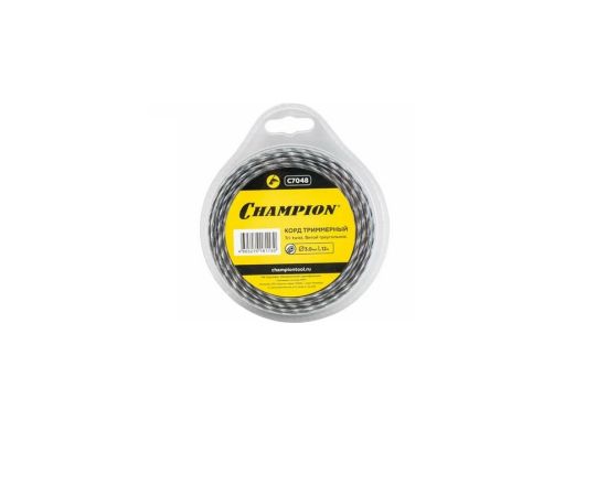 Корд триммерный Champion Tri-twist C7048 (сечение — витой треугольник) — 2-компонентный материал, который применяется для кошения растительности мото- и электрокосами.