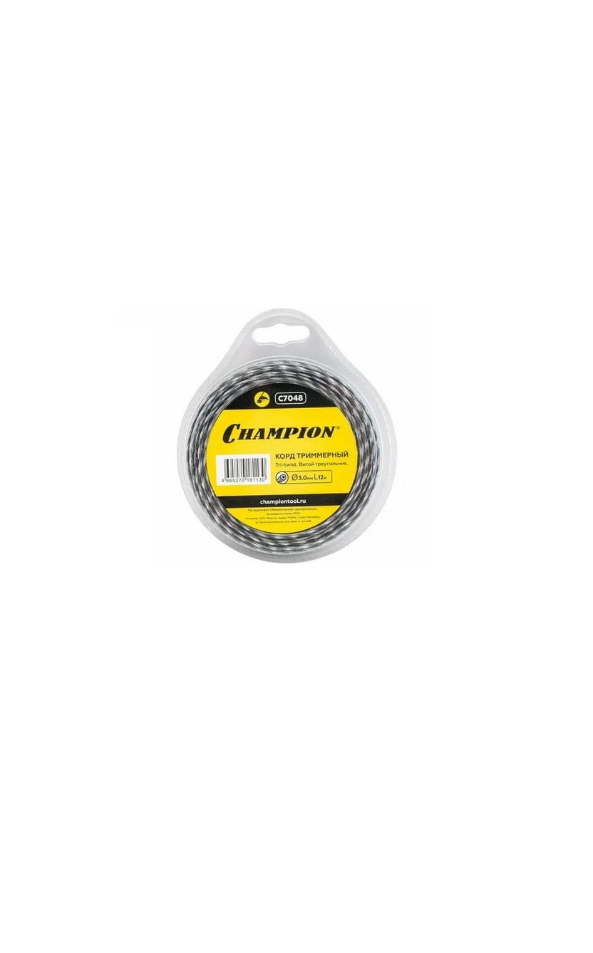 Корд триммерный Champion Tri-twist C7048 (сечение — витой треугольник) — 2-компонентный материал, который применяется для кошения растительности мото- и электрокосами.