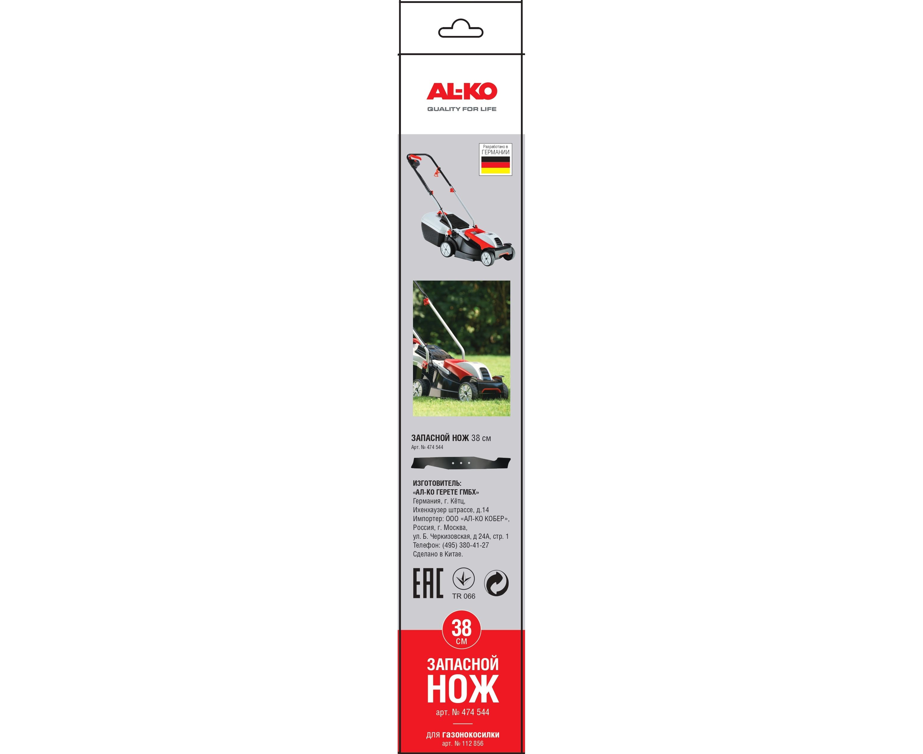 Нож запасной GEOS 38 см, для газонокосилки электрической, универсальный, подходит для электрических газонокосилок AL-KO, арт. 112856.