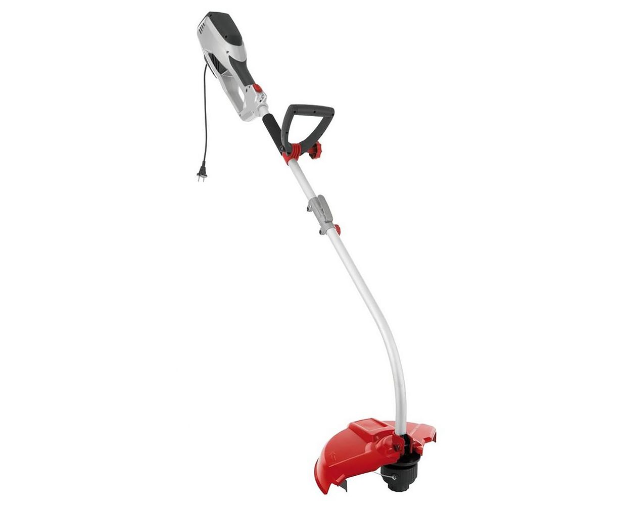 Триммер Al-ko BC 1000 E 112923 работает от электрической сети 220 В. Можно разобрать на две части для удобства транспортировки и хранения. Применяется на дачных участках для подравнивания газона. Инструмент укомплектован катушкой с нейлоновой леской и кожухом с ограничителем для подрезки лески.